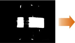Expansion- und Shrink-Verarbeitung (vergrößern/verkleinern). Unnötige Vorsprünge werden aus der Abbildung entfernt und anschließend wird der ursprüngliche Umriss des Messobjekts wieder hergestellt.