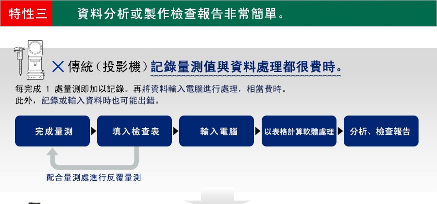 大幅縮短檢查時間,各製程負責人可隨時輕鬆地進行產品的自主檢查。因此對於自己所製造的壓模或產品,也可抱持信心送往下一個製程。