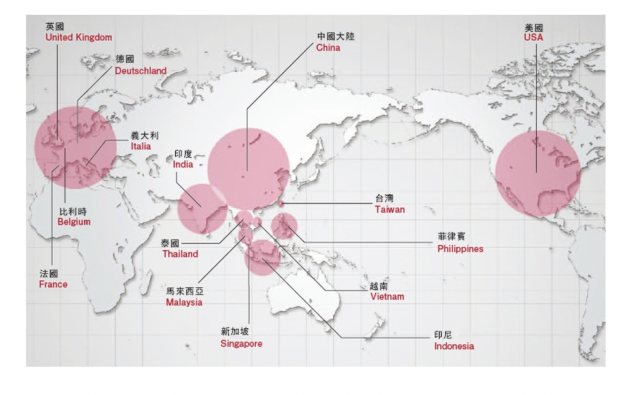 為了支援客戶進行海外生產,KEYENCE 採獨家支援體制。例如產品將由世界各地的物流據點,送到客戶於海外的生產據點。不需繁雜的手續,即可將設備導入海外生產據點。