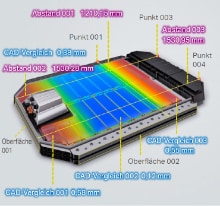 Bauteile/große Baugruppen bis 25m können ohne Aufwand präzise gemessen werden. Sie bringen den Messraum zum Bauteil. Die Messung und der Scan können an einer beliebigen Stelle im Messbereich ausgeführt werden.