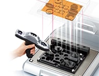 Über das taktile Setzen von Punkten auf der Bauteiloberfläche ergeben sich X-, Y- und Z-Koordinaten, geometrische Größen sowie Form- und Lagegrößen.