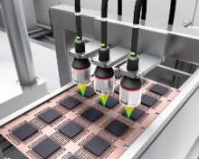 Messen Sie präzise auf allen Messobjekten, einschließlich transparenter oder spiegelnder Materialien, unbearbeitetem Metall, Keramik, Klebstoffen oder Objekten, die zu Mehrfachreflexionen neigen oder Licht stark absorbieren. Der Sensor trennt das von Oberfläche und Rückseite reflektierte Licht