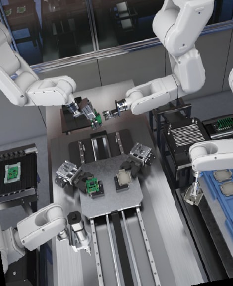 Die Modellreihe CV-X kommuniziert direkt mit einer Vielzahl von Robotern, gleicht die Koordinatensysteme von Bildverarbeitung und Robotern ab und sorgt dabei für einen stabilen Betrieb.
