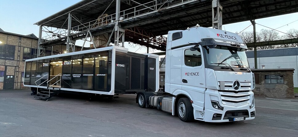 Der KEYENCE Roadshow Truck bringt unseren mobilen Showroom voller Innovation direkt auf Ihr Firmengelände.