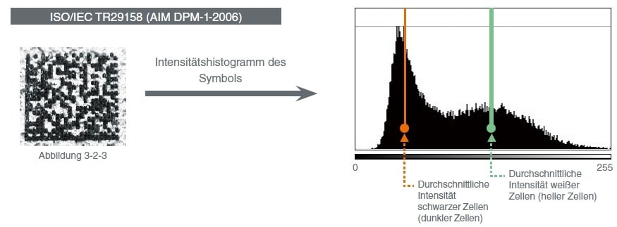 - ISO/IEC TR 29158 (AIM DPM-1-2006) berechnet den Grenzwert aus dem kleinsten Intensitätswert der