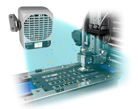 Mit einem konstanten Ionengleichgewicht von ± 1 V kann der Ionisator in beliebigen Halbleiterfertigungen verwendet werden. Der Entladungsverlauf kann im Nachhinein geprüft werden, um im Falle eines Problems die jeweiligen Zeiträume identifizieren zu können.