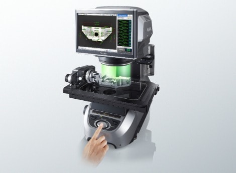 Bauteil auflegen bzw. einspannen und Knopf drücken - so werden alle Messungen mit dem Digitalen Messprojektor gestartet. Innerhalb weniger Sekunden werden bis zu 300 Maße an bis zu 100 Bauteilen gleichzeitig gemessen.