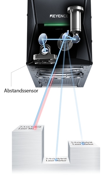 Der Beschriftungslaser der Modellreihe MD-X ist standardmäßig mit einem integrierten Abstandssensor ausgestattet. Dies gewährleistet eine zuverlässige Fokussierung, indem zunächst der Abstand gemessen und dann der Beschriftungsbereich eingestellt wird.