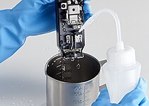 Bei der bisherigen automatischen Reinigung wurden mit Lösungsmittel lediglich die Tintenwege gereinigt. Dank der neu installierten automatischen Spülreinigung werden beim MK-G der Tintenweg, die Düse, die Elektrodenplatten und der Rücklauf gleichzeitig gereinigt.