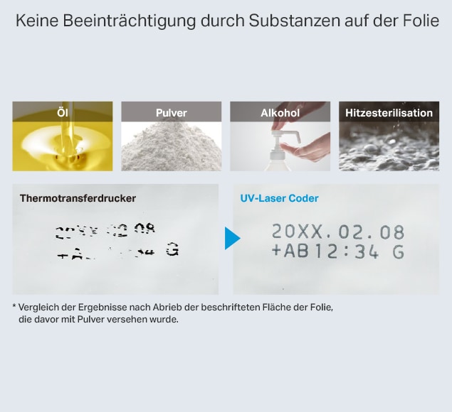 Der UV-Laser Coder vermeidet Ausfallzeiten, die normalerweise für den Austausch von Farbbändern oder die Reinigung von Druckköpfen entstehen.