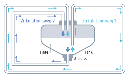 Der MK-U verfügt über einen neu entwickelten Tank, der für Pigmenttinten optimiert ist. Durch das doppelte Zirkulationssystem wird das Verklumpen der Tintenpartikel im Betrieb verringert. Durch leicht dispergierbare Tinten sowie durch das doppelte Zirkulationssystem wird ein Verstopfen der Tintenwege verhindert und ein stabiler Betrieb erzielt.
