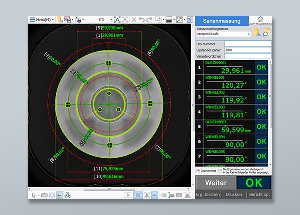 99 Messungen an bis zu 100 Bauteilen in 3 Sekunden mit automatischem Prüfbericht