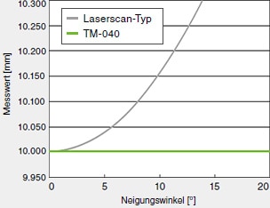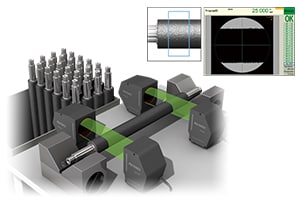 Problemlos möglich, da die Modellreihe TM-3000 den Außendurchmesser anhand eines 2D-Bildes ermittelt und dabei zugleich die Neigung des Objekts erkennt. Somit kann der Sensor den Außendurchmesser erfassen und dabei automatisch die Neigung korrigieren.