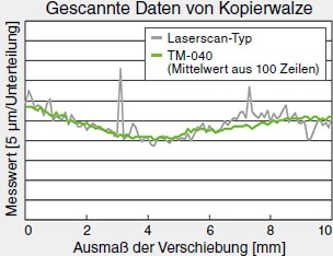 Im erfassten Bild wird ein Bereich ausgewählt. Das System berechnet den Durchschnitt der Durchmesser innerhalb dieses Bereichs. So lässt sich der durch die Oberflächenrauheit bedingte Messfehler minimieren.