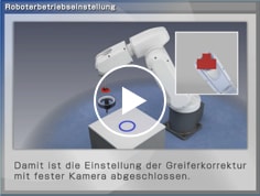 This video introduces the flow of CV-X Series settings that are required to perform grip correction operations with a camera fixed in place below the robot.