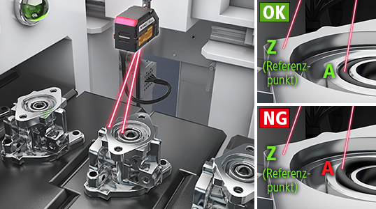 Bildbasierter Höhenvergleichssensor - Beurteilung aufgrund von Höhenmerkmalen. Lasertriangulation mit Positionsnachführung.