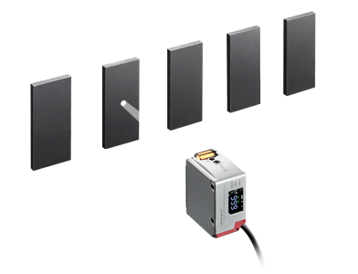 Unterschiede von Objekten und deren Oberflächenbeschaffenheit können zuverlässig über beide Lichtpunkte überwacht werden. Hierfür ist keine Kalibrierung erforderlich.