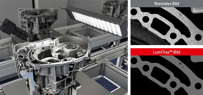 Mit dem LumiTrax™-Spiegelreflexionsmodus ist eine stabile Erkennung selbst von kleinsten Kratzern, Dellen, leichten Verschmutzungen und anderen schwer zu bestimmenden Merkmalen auf Metalloberflächen möglich.