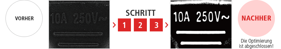 Nur die Prägungen werden genau extrahiert, auch wenn der Hintergrund oder das Prüfobjekt dieselbe Farbe hat.