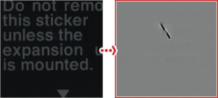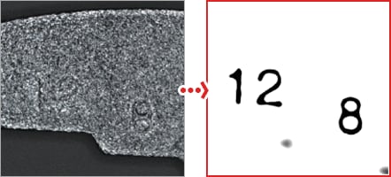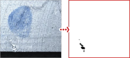 Es werden Bilder erstellt, in denen nur die Beschädigungen extrahiert sind, deren Auswertung nicht durch den komplexen gedruckten Hintergrund beeinträchtigt wird.
