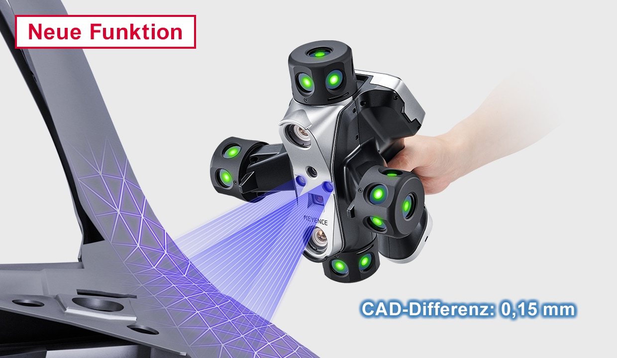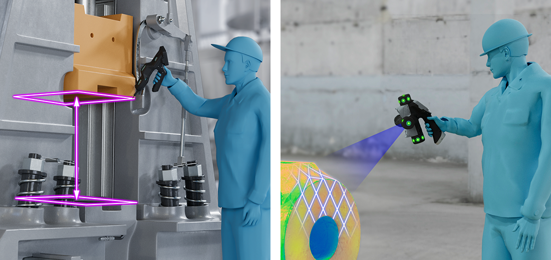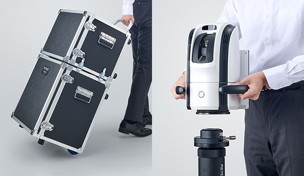 Die Mobilen 3D-Koordinatenmessgeräte der Modellreihe WM-6000 können die Abmessungen und Formen von Produkten problemlos messen. Abmessungen können mit dem Messtaster und Formen mit dem Laser-Scanner gemessen werden. Die kabellosen Messtaster sorgen für einen uneingeschränkten Einsatz und ermöglichen so eine einfache Messung über einen großen Bereich. Da keine Vorbereitung wie Sprühen oder Kleben von Referenzpunkten erforderlich ist, kann das Scannen schnell und mit hoher Genauigkeit durchgeführt werden.