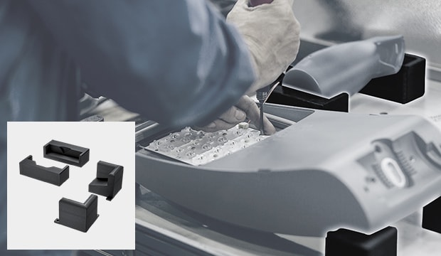 3D-Drucker sind bei der Erstellung von Vorrichtungen nützlich. Vorrichtungen in kleinen Serien oder Haltevorrichtungen für Produkte mit Freiformflächen können meist schneller hergestellt werden, als Vorrichtungen, die zur aufwendigen Herstellung ausgelagert werden mussten. Es kann auch Fälle geben, in denen die benutzten Vorrichtungen so konstruiert sind, dass sie weniger Material verbrauchen und dadurch ihr Eigengewicht reduzieren. Diese Verringerung des Materialeinsatzes kann die Arbeitseffizienz verbessern oder die technischen Anforderungen an den Roboter reduzieren und somit zu niedrigeren Kosten führen. Andererseits kann der Entwurf eines Produkts vor Produktionsanlauf mit einem 3D-Drucker gedruckt werden, um die Vorrichtung zu optimieren. Diese Optimierung kann die Produktivität frühzeitig verbessern.