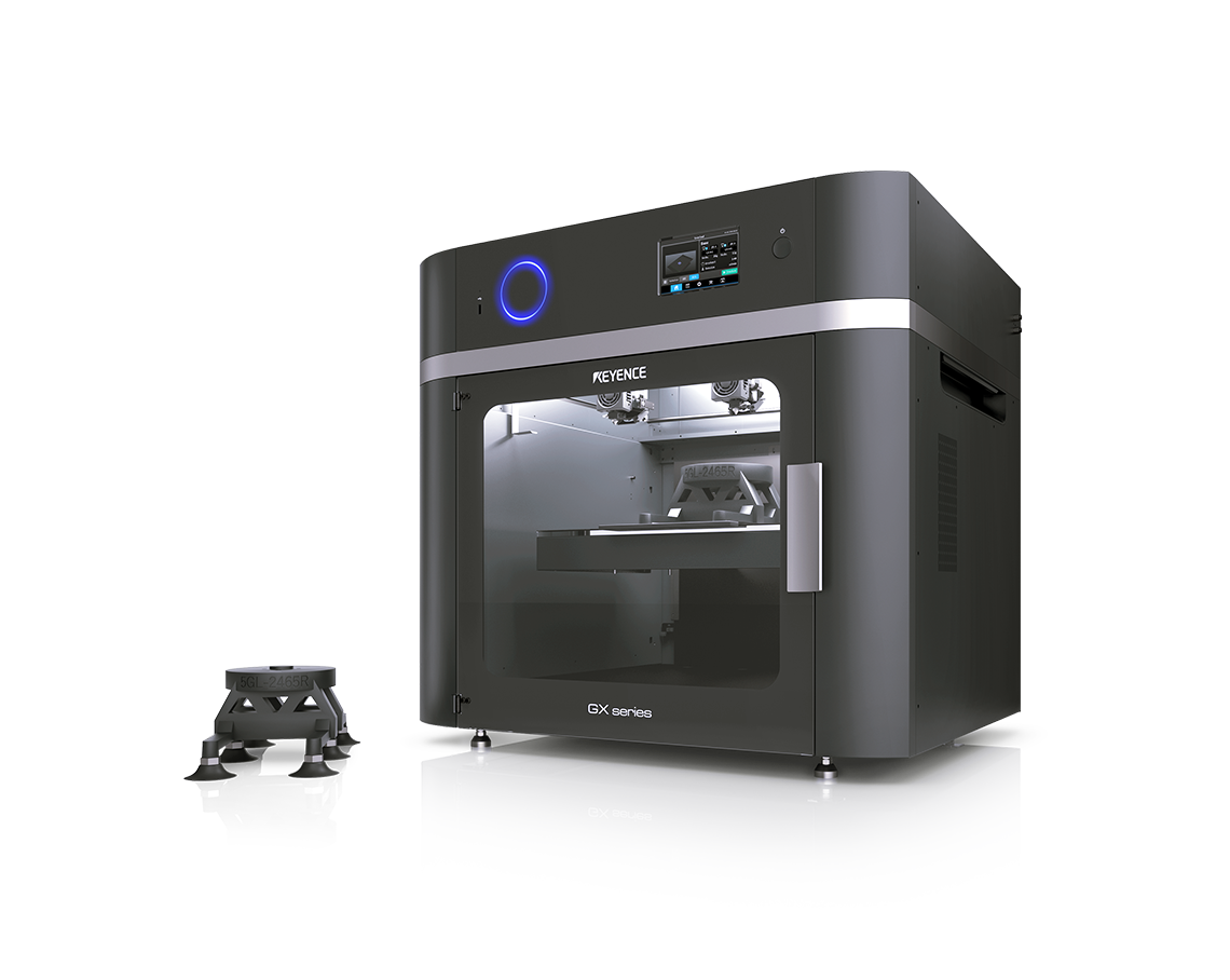 Die Modellreihe GX-1000 ist ein industrieller 3D-Drucker, der großformatige und komplexe Bauteile aus technischen und Hochleistungskunststoffen fertigen kann – direkt in der Produktion. Trotz des Filamentdruckverfahrens sind keine aufwendigen Einstellungen erforderlich, wie sie bei herkömmlichen Systemen oft notwendig waren. Fehlerquellen wie Verzug, Maßabweichungen oder Druckabbrüche wurden gezielt eliminiert. So kann der GX-1000 in jeder Abteilung sofort eingesetzt werden – ganz ohne Vorkenntnisse. Ein neu entwickelter Algorithmus mit unabhängig arbeitenden Dual-Extrudern sorgt für hohe Druckgeschwindigkeit bei gleichbleibender Präzision. Betriebsmittel, Funktionsteile, Werkzeuge und Vorrichtungen lassen sich in kürzester Zeit herstellen – stabil, maßhaltig und bereit für den realen Einsatz im Produktionsumfeld.