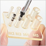 Beispielsweise ist der KEYENCE 3D-Drucker der Modellreihe AGILISTA ein Inkjet-Drucker, wodurch er Acrylharz und Silikongummi verdrucken kann. Jeder 3D-Drucker verwendet ein produktbezogenes Druckmaterial. Folglich können sich die Eigenschaften von denen des typischen Acryls oder Silikongummis unterscheiden. Man sollte sich vorher darüber klar sein, dass sich die Eigenschaften der mit 3D-Druckern gedruckten Objekte von denen der durch Formen hergestellten Objekte unterscheiden können, obwohl der Name des Materials derselbe ist.