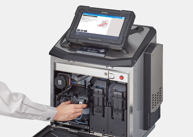 Die Modellreihe MK-G von KEYENCE bietet einen werkzeuglosen Teileaustausch für eine einfache Wartung. Verschleißteile verfügen über Schnellverschlussschrauben/-knöpfe zur schnellen Entnahme. Dies reduziert Ausfallzeiten und den manuellen Aufwand im Vergleich zu herkömmlichen Kennzeichnungsgeräten.
