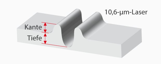 Eine weitere Möglichkeit der Laserbeschriftung auf Kunststoff ist das Gravieren bzw. der Abtrag der Materialoberfläche mit einem Laser.