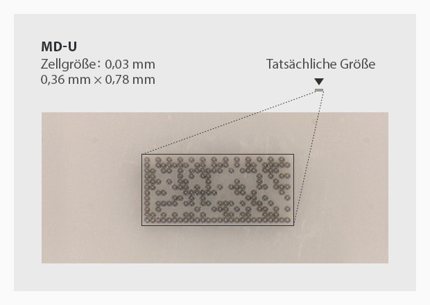 Die UV-Wellenlänge der Modellreihe MD-U ist 1/3 der Länge eines Standardlasers, was zu einem kleineren Strahldurchmesser führt. Dadurch markiert der UV-Laser präzise an den Stellen, an denen eine Beschriftung benötigt wird. Es gibt daher keine Hitzeausdehnung des Materials, was zu Verformungen führen könnte.