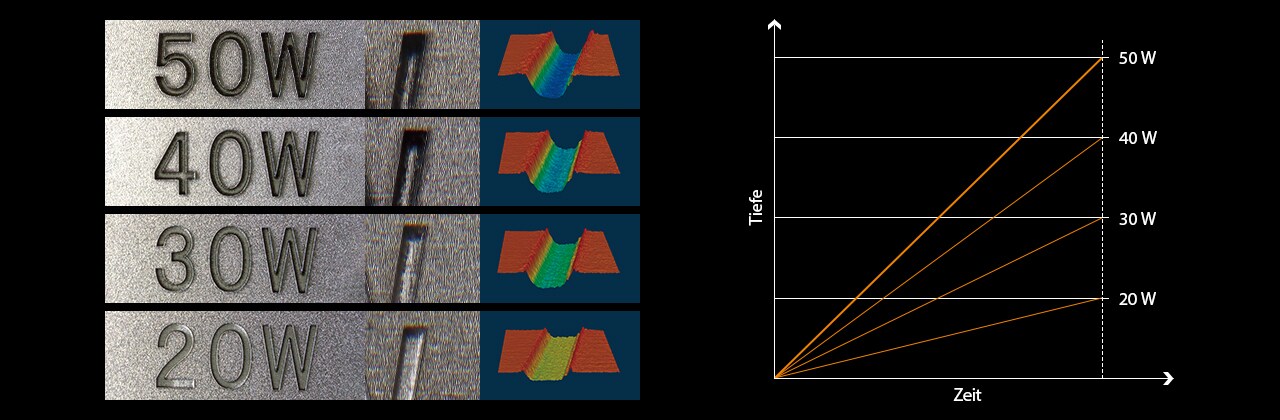 Im Gegensatz zu Stempeln oder Handbohrgeräten kann die Lasergravur tief in Materialien eindringen. Die tiefen Schnitte der Lasergravur hinterlassen hochwertige Markierungen, die präzise sowie dauerhaft sind.