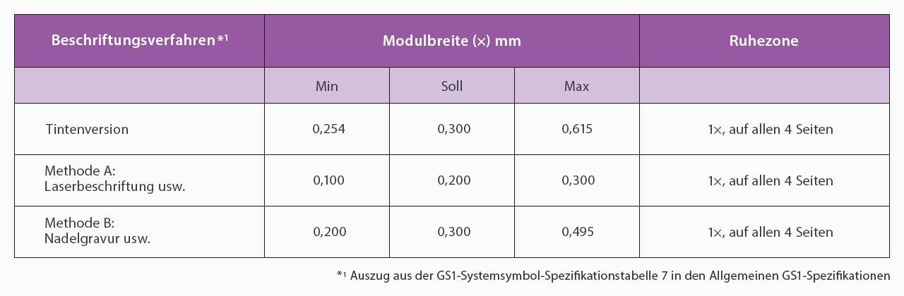 - GS1-Datenmatrix (wenn nicht genügend Platz für einen GS1-128 zur Verfügung steht)