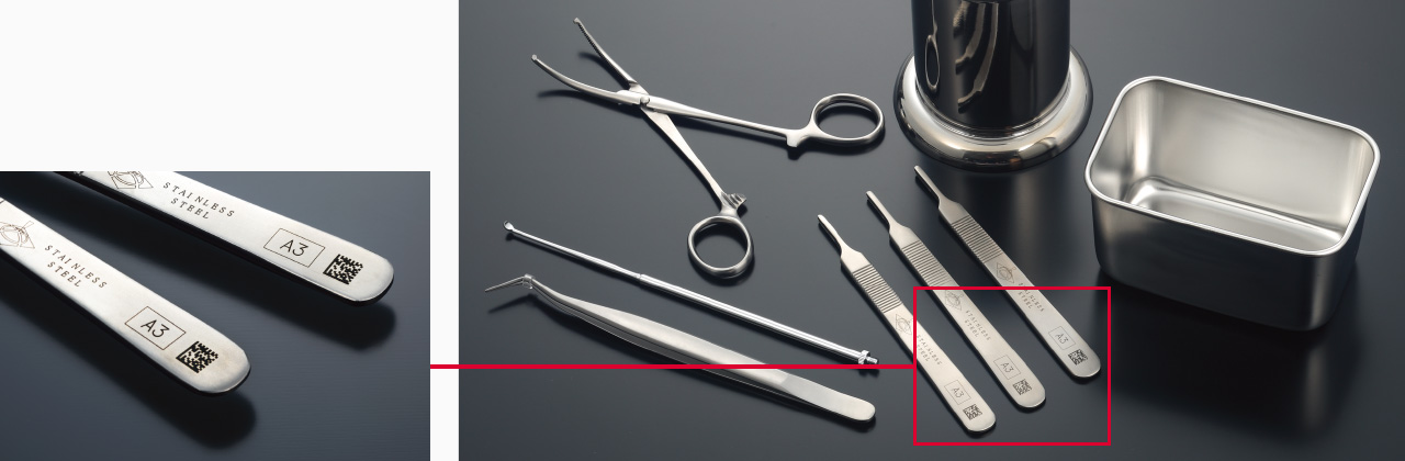 Medizinische Instrumente wie Stahlinstrumente und Endoskope sind im Allgemeinen kompakt und präzise. Wiederholte Verwendung nach dem Waschen und Sterilisieren ist üblich, daher sind Etiketten wie Papier oder Folie für die UDI Konformität aufgrund des begrenzten Platzes zum Anbringen und der Langzeitbeständigkeit problematisch.