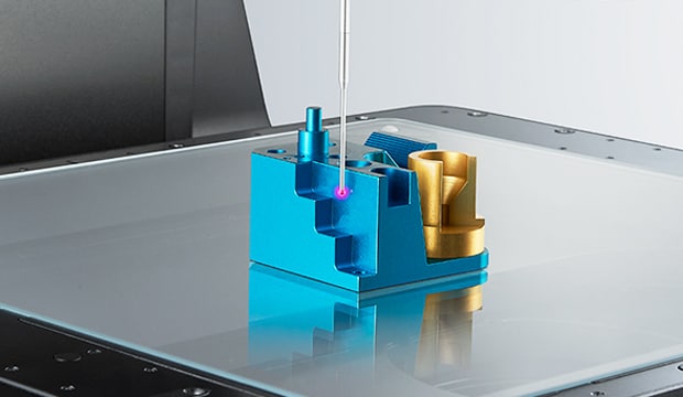 Der integrierte konfokale Laser erfasst schnell die Höhe der angegebenen Stelle am Teil und ermöglicht so unabhängig vom Material eine genaue Messung.