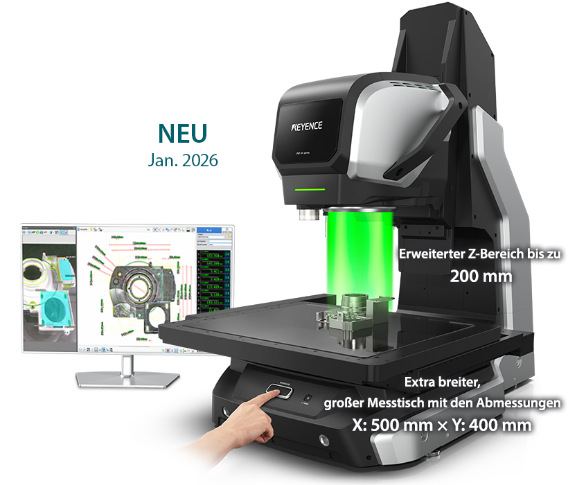 NEU Für ein breites Anwendungsspektrum, von kleinen bis zu großen Teilen Neue Funktion: Extra breiter, großer Messtisch (mit einer Größe von 500 mm x 400 mm)