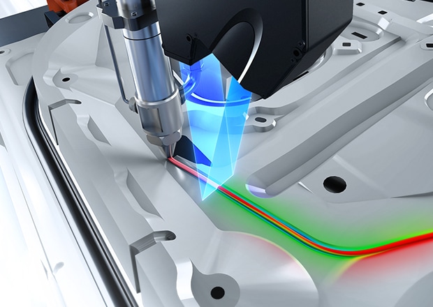 2D-Profilsensoren können die Breite, Höhe und das Volumen von Dichtmittelraupen inline messen, unabhängig von der Oberflächenbeschaffenheit oder Farbe.