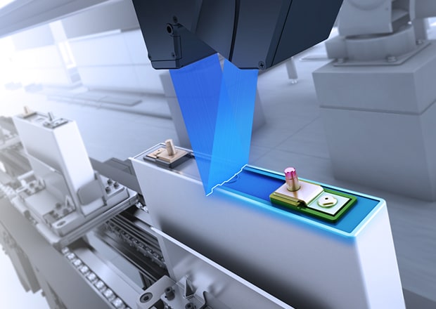 Die 3D-Inspektion ermöglicht es den Benutzern, genau zu erkennen, ob Komponenten ordnungsgemäß in der Baugruppe sitzen oder ob Elemente geneigt sind. Die Verwendung eines 2D/3D-Laser-Profilsensors mit blauem Laser gewährleistet stabile Messungen, selbst bei Objekten mit unterschiedlichen Materialien.