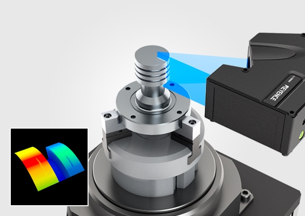 Bei Objekten mit unterschiedlichen Durchmessern haben herkömmliche Bildverarbeitungssysteme oft Schwierigkeiten, gleichzeitig auf die größeren und kleineren Durchmesserbereiche zu fokussieren. Durch die Messung der Höhe der Wellen mit einem Laser-Profilsensor ist es möglich, die gesamte Oberfläche auf einmal zu inspizieren.