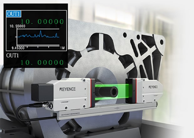 Die Exzentrizität des Rotorkerns kann berührungslos gemessen werden. Dank der Hochgeschwindigkeitsabtastung der Modellreihe LS-9000 lassen sich Position und Durchmesser des Kerns während der Rotation präzise erfassen – Bedienfehler werden dadurch vollständig ausgeschlossen.