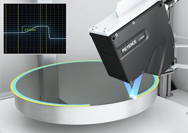 Zu den nachfolgenden Fertigungsprozessen in der Halbleiterindustrie gehören die Messung des Kantenprofils der Wafer und die Bestimmung der Wafer Notch Position für das Vereinzeln. Diese Inspektionsschritte werden typischerweise mit Systemen wie der Modellreihe LJ-X8000 von KEYENCE durchgeführt.