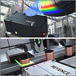 Bei der Automatisierung von Prozessen wie Beschichtung, Schweißen und Bauteilmontage ist eine genaue Positionierung von Aktoren und/oder Werkzeugen notwendig. Der kompakte und leichte Messkopf der Laser-Wegmesssensoren mit Mehrfarben-Konfokalverfahren von KEYENCE lässt sich problemlos installieren und ermittelt genau den Abstand zum Messobjekt, was eine hochpräzise Positionssteuerung ohne Beeinträchtigung des Prozesses selbst ermöglicht.