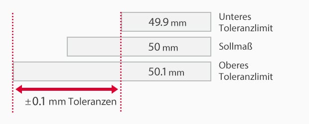 Beispiel: Zylinder 50 mm, Bauteiltoleranz ±0,1 mm