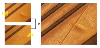 Die Beleuchtungsvariation ermöglicht die Visualisierung kleinster Unregelmäßigkeiten, die mit Vorgängermodellen von KEYENCE nicht zu erkennen waren.