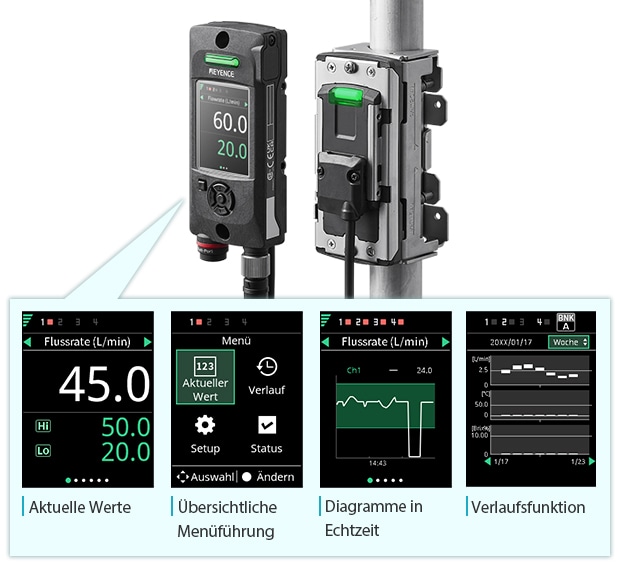 Die Durchflusssensoren der Modellreihe FD-H können ohne Eingriff in das Rohrsystem montiert werden. Neben Metall- und Hartkunststoffrohren ist eine Montage dieser Durchflusssensoren auch auf Schläuchen, Hochdruckschläuchen und weichen Rohren möglich. Die Modellreihe FD-H bietet daher eine stabile Durchflussüberwachung unabhängig vom Rohr, dem Zustand der Flüssigkeit und der Flüssigkeit selbst. Auch bei hohen Rohrtemperaturen und hohen Viskositäten sowie Blasen und Partikeln im Medium bleibt die Erkennung stabil. Darüber hinaus ist auch ein Anschluss von Konzentrations- und Temperatursensoren, sowie eine zentrale Verwaltung der Prozessdaten möglich.