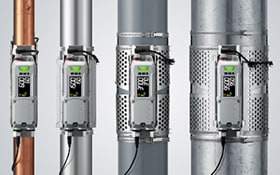 Die anklemmbaren Durchflusssensoren der Modellreihe FD-R sind für Rohre bis zu 8" ausgelegt. Die Installation ist einfach und erfordert nur einen Schraubendreher. Das Gerät kann auf einer Vielzahl von Rohren und Rohrmaterialien montiert werden, darunter Edelstahl, Eisen, Kupfer, PVC und Kunststoff. Sowohl die Durchfluss- als auch die Temperaturüberwachung ist für eine Vielzahl von Flüssigkeiten möglich – von Wasser (einschließlich Reinwasser) bis hin zu Öl, Chemikalien und Hochdruckflüssigkeiten – bei Temperaturen zwischen -20°C und +120°C. Das Gerät kommt nicht mit der Flüssigkeit in Kontakt, so dass keine Gefahr von Korrosion oder Verschleiss durch den Medienkontakt besteht. Dadurch können die Wartungszeiten und -kosten reduziert werden. Der Sensor verfügt über gut ablesbare Anzeigen und eine integrierte Datenlogger-Funktion. Die Schutzart IP69K und die NEMA4X machen diesen Sensor sowohl für den Innen- als auch für den Außeneinsatz äußerst zuverlässig und praktisch überall einsetzbar.