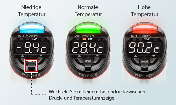 Dank zwei integrierten Temperatursensoren wird eine präzise Temperaturüberwachung ermöglicht - unabhänging von der Umgebungstemperatur. Druck und Temperatur werden gleichzeitig überwacht und können durch die große Status-LED auf einen Blick visualisiert werden.