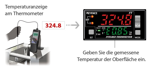 Geben Sie den Wert (Emissionsgrad oder Oberflächentemperatur) ein