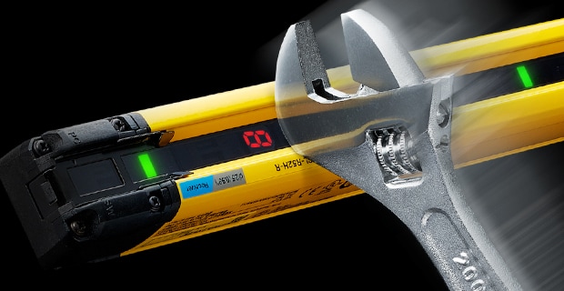 Viele Sicherheitslichtvorhänge müssen regelmäßig gewartet werden, um Stillstände und andere Probleme aufgrund einer reduzierten Lichtleistung zu vermeiden. Eine verringerte Lichtleistung bzw. Abnahme des empfangenen Lichts kann durch Fehlausrichtung (aufgrund von Stößen oder Vibrationen) oder durch Verschmutzung verursacht werden.