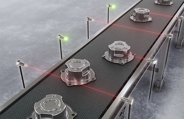 Lichtleitersensoren erkennen Objekte und Zustände, indem sie Licht auf oder über ein Zielobjekt leiten und die Zunahme oder Abnahme der Intensität des zurückkehrenden Lichts auswerten.
